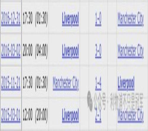 --利物浦上赛季客场对曼城2-0取胜,但自1987年到1991年的客场3连胜至今,还不曾连续2个赛季联赛客场击败曼城。